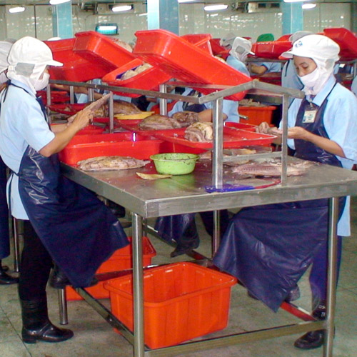 Làm bằng vật liệu thép không rỉ, dùng cho công việc vận chuyển thực phẩm trong quá trình chế biến